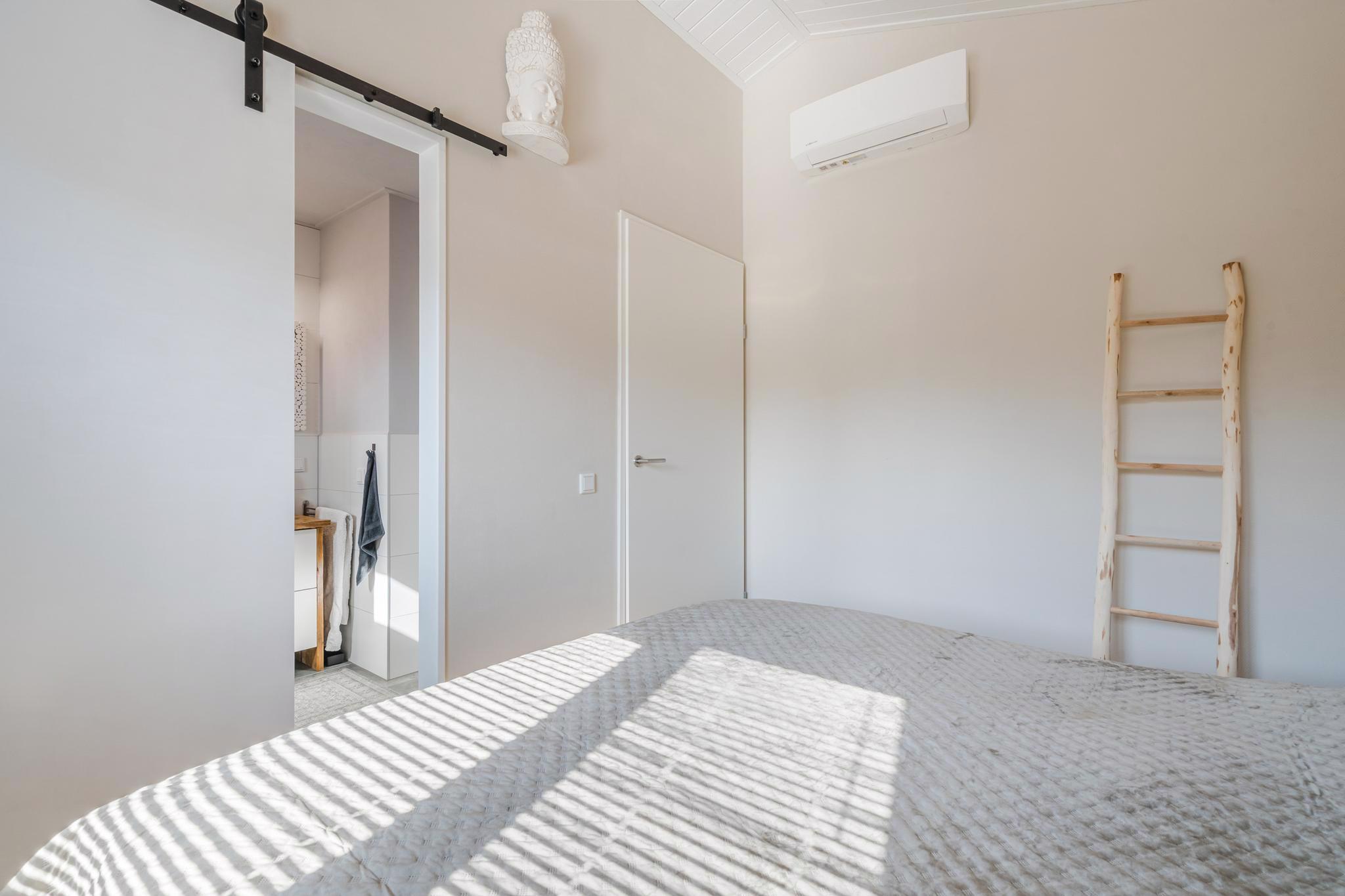 De woning beschikt over twee slaapkamers. De hoofdslaapkamer is voorzien van airconditioning met verwarmingsfunctie en een schuifdeur naar de badkamer. De tweede slaapkamer wordt momenteel gebruikt als inloopkast/bergruimte, maar kan natuurlijk ook als slaapkamer