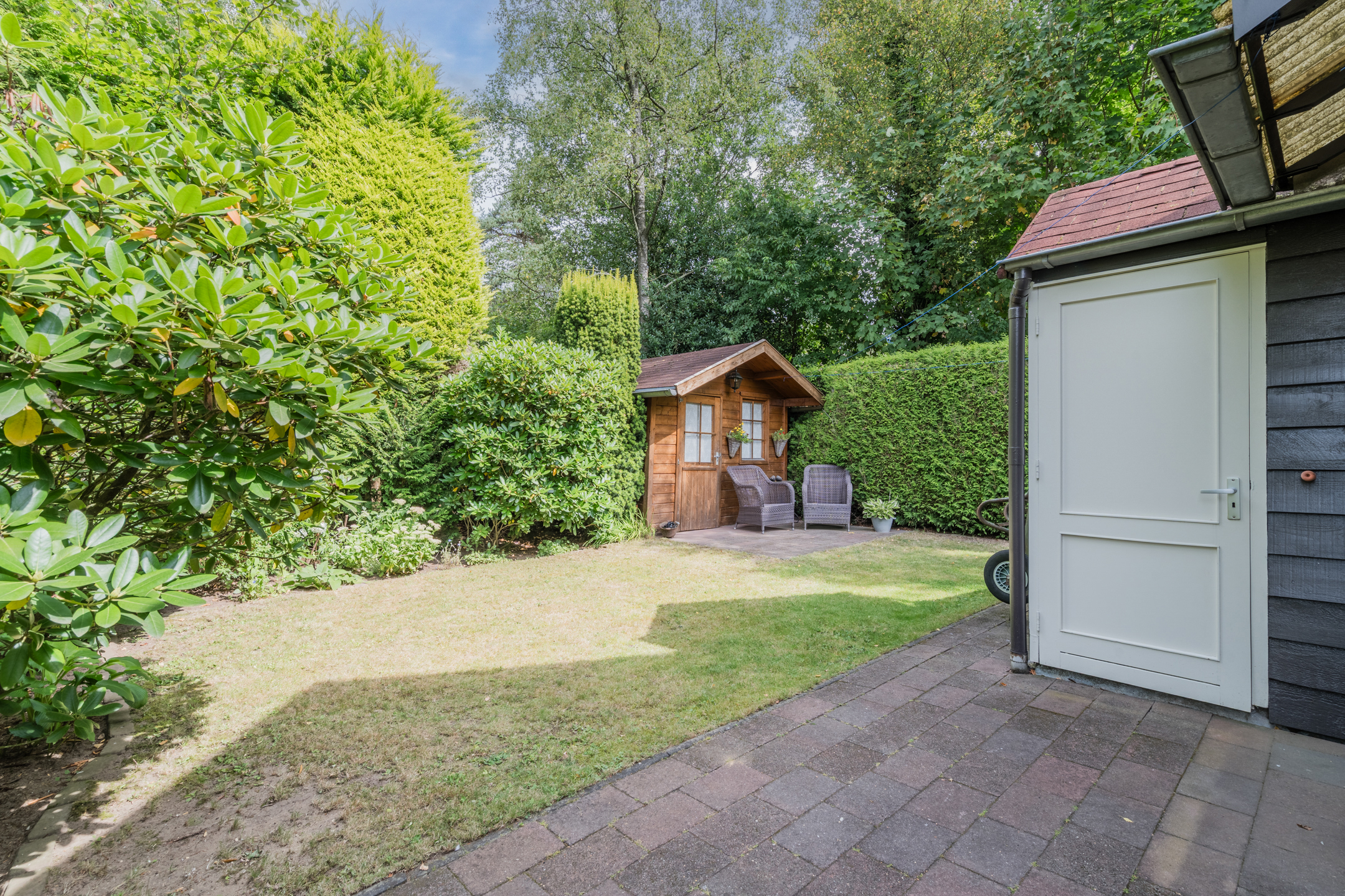 De woning beschikt over een goed onderhouden tuin rondom de woning. De tuin is fraai aangelegd met een overdekt terras met zonnescherm, bomen, gazon en vaste planten. Daarnaast beschikt de woning over een houten berging; ideaal voor de fietsen en tuingereedschap. Er is een houthok aanwezig zodat het hout goed droog blijft.