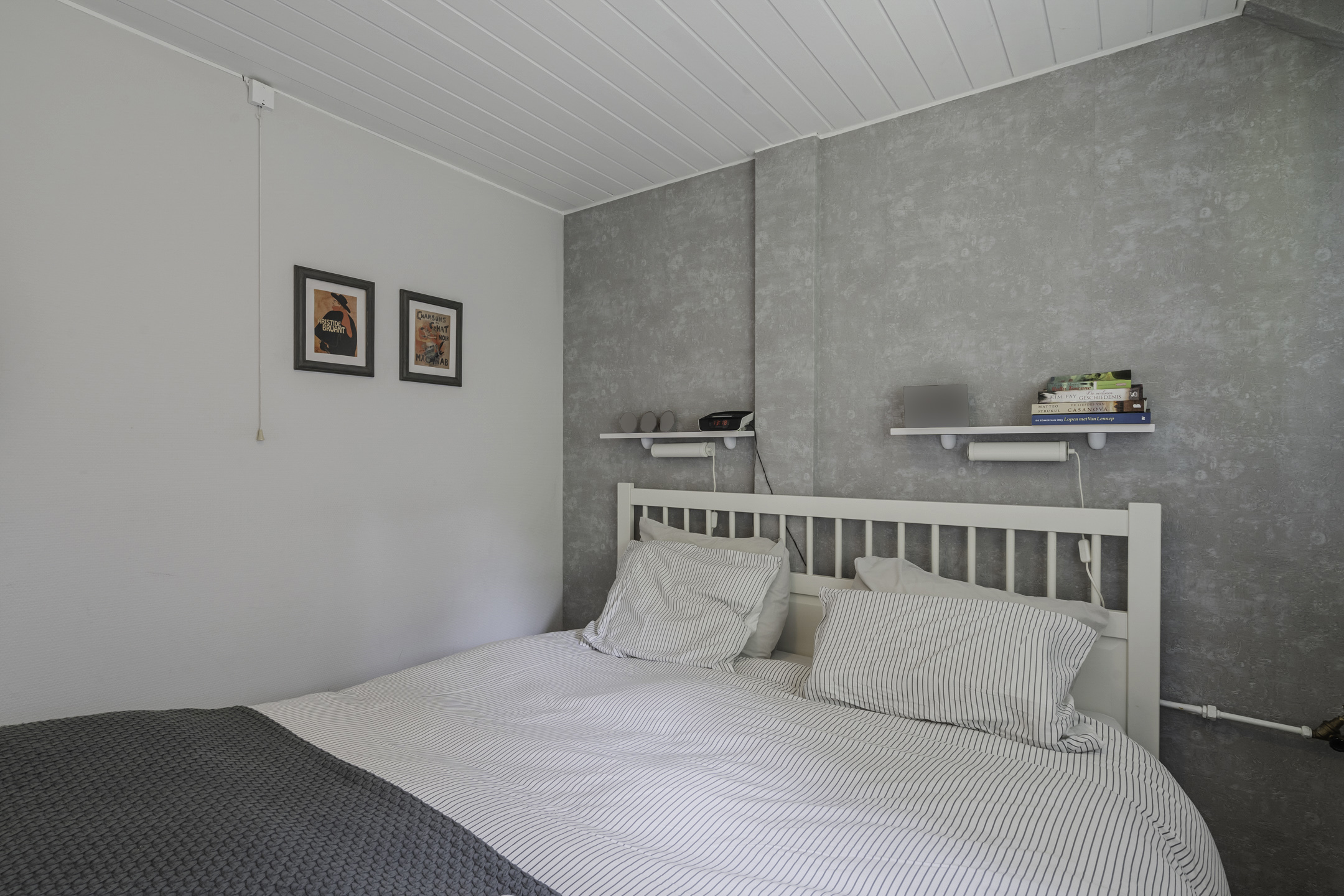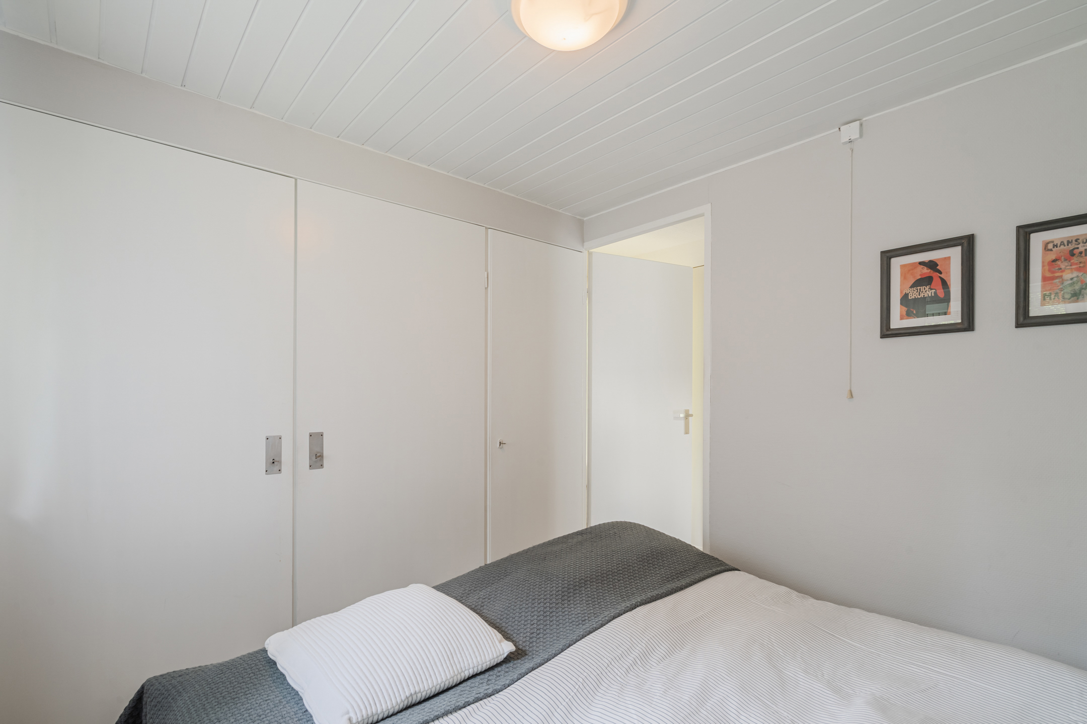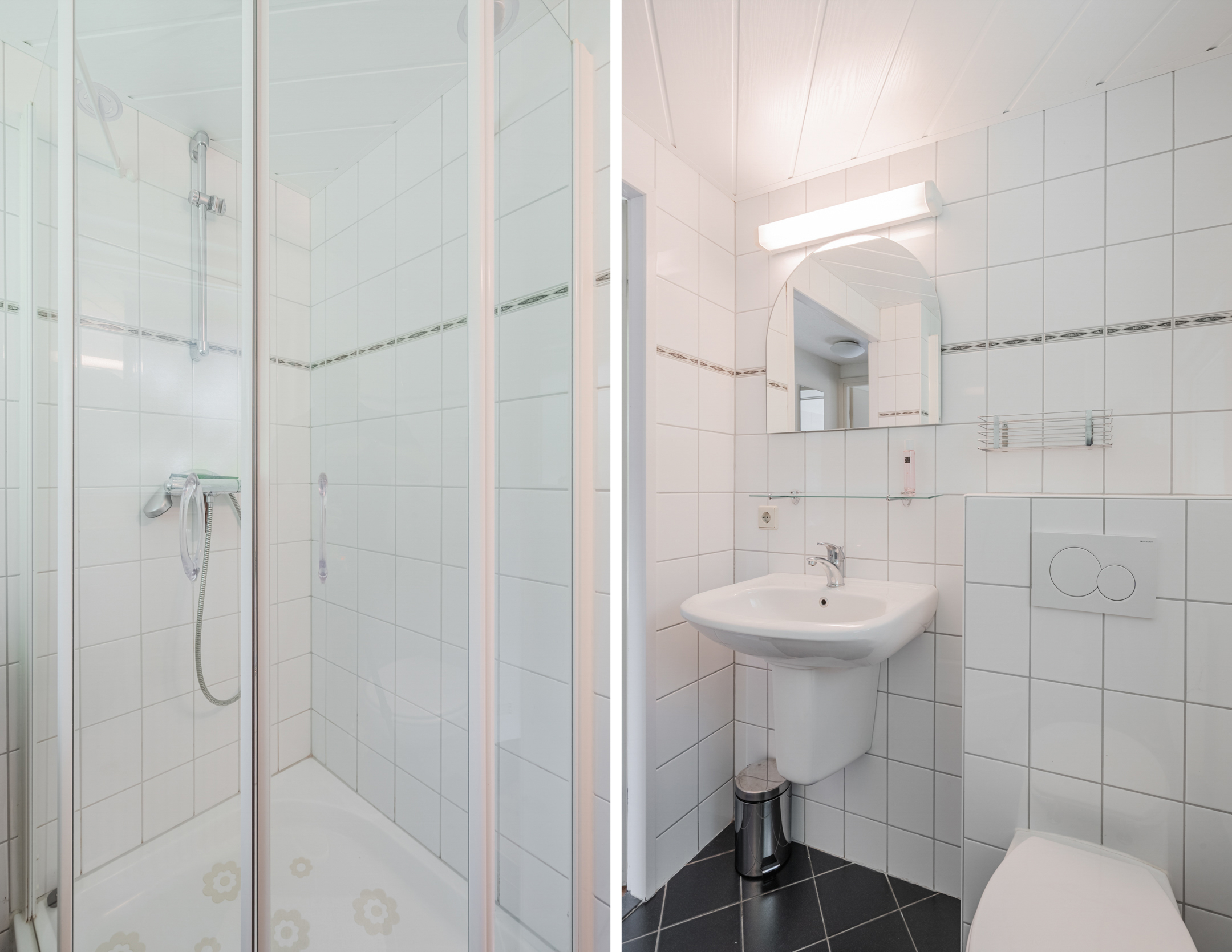 Vanuit de hal heb je toegang tot de slaapkamer met vaste kasten en de badkamer met zwevend toilet, douchecabine en wastafel. Verder is er een extra ruimte aanwezig met de wasmachine en cv-ketel.