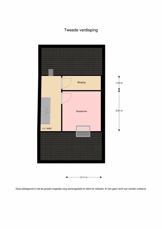 Via de zoldertrap wordt de 2e verdieping bereikt. Op de voorzolder zit een dakraam, vaste kastruimte en de cv-ketel. De vierde slaapkamer van deze woning bevindt zich hier en heeft een groot dakraam en vaste bergruimte onder het schuine dak. Verder is er nog een kamer op zolder die als bergruimte kan worden gebruikt.