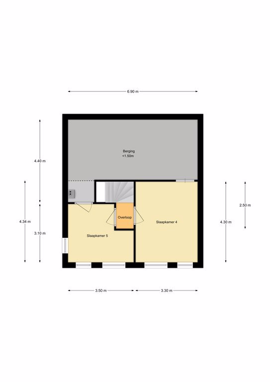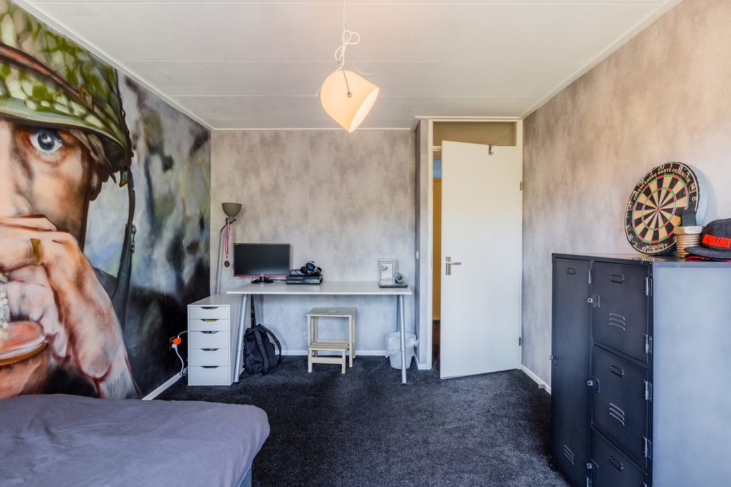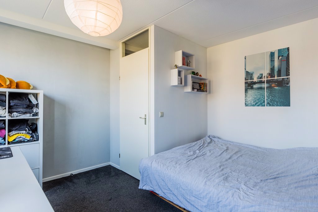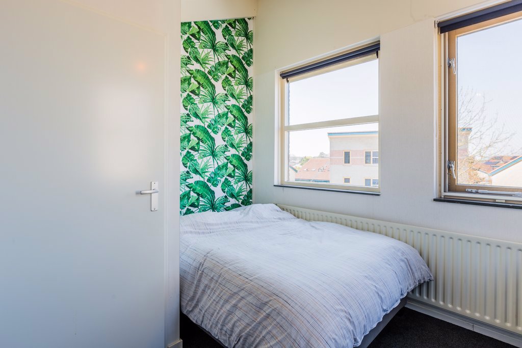 Op de 2e verdieping zijn nog twee kamers te vinden. Het hoge plafond geeft deze kamers een ruimtelijk gevoel. Op deze verdieping zit ook de cv-ketel en onder de schuine kant zit bergruimte over de hele breedte van de woning.