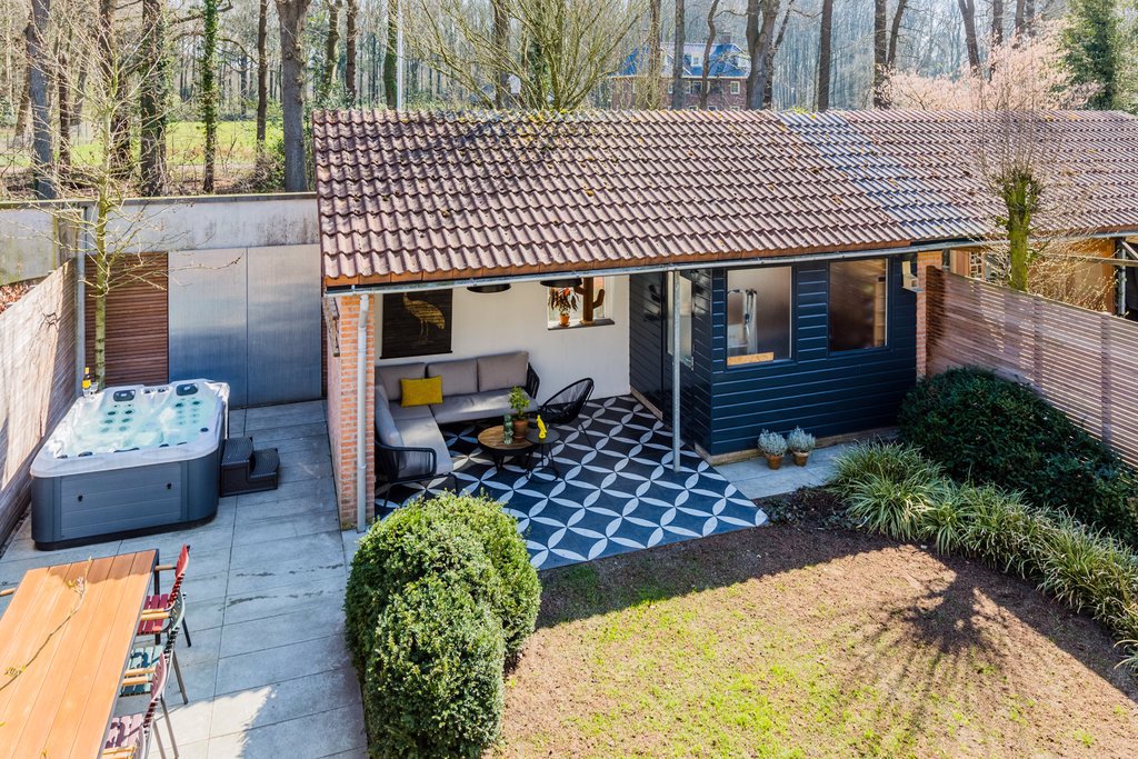 In de tuin is altijd wel een plek te vinden in zowel de zon als de schaduw, door de gunstige ligging op het zuidoosten. Hier kom je echt tot rust en geniet je ’s zomers tot in de late uurtjes van de buitenlucht onder de overkapping of zelfs in de jacuzzi! Naast de overkapping zit een schuur met veel bergruimte. Daarachter zit een deur, waardoor je slechts de weg over hoeft te steken om gelijk het Schaffelaarse Bos in te lopen.
