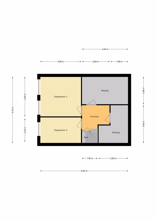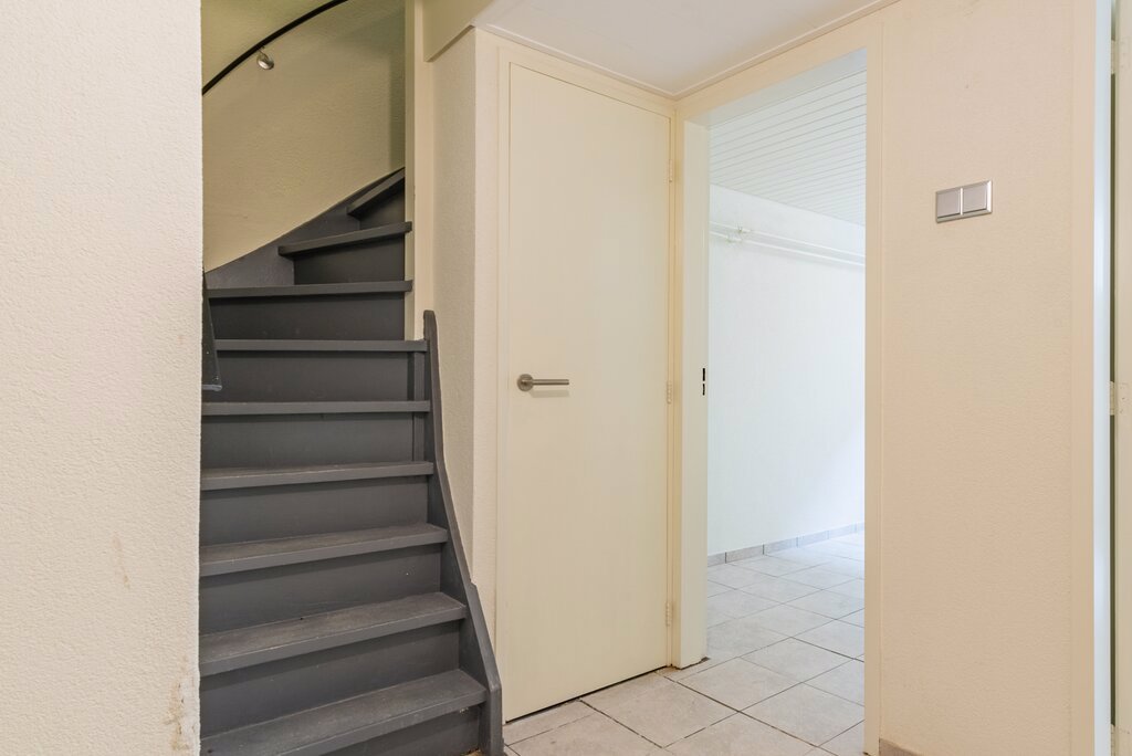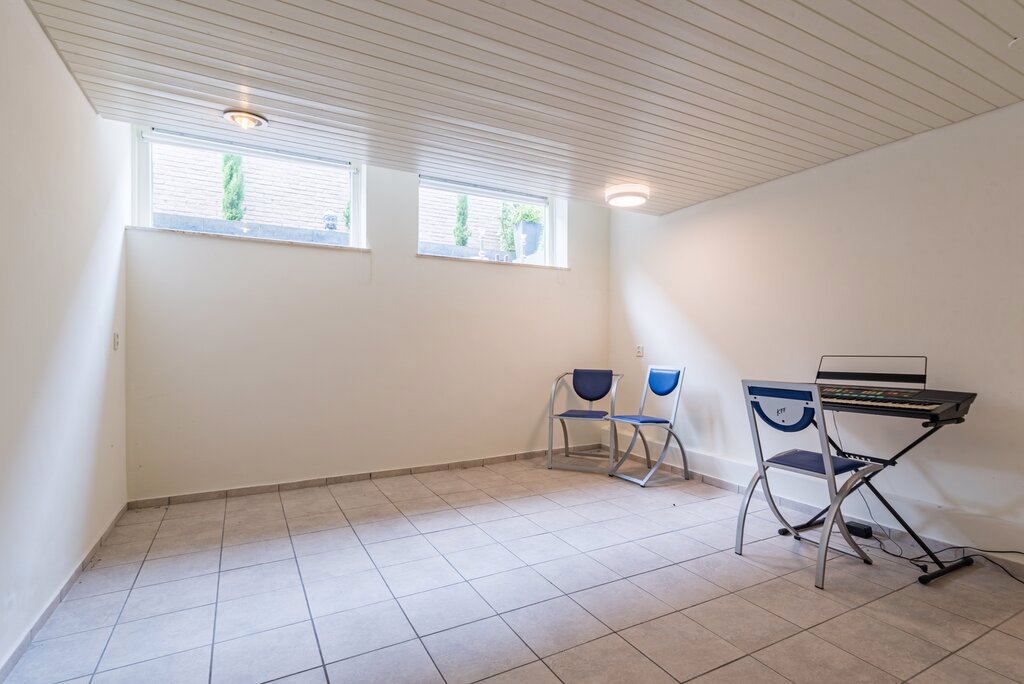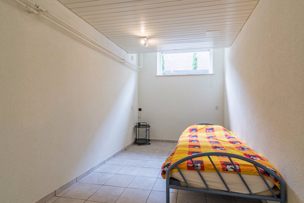 Via de trap naar beneden komen we in het souterrain. Hier is verrassend veel ruimte te vinden. In de 2 slaapkamers komt veel daglicht naar binnen. Daarnaast zijn er 2 bergruimtes en een vaste kast aanwezig.