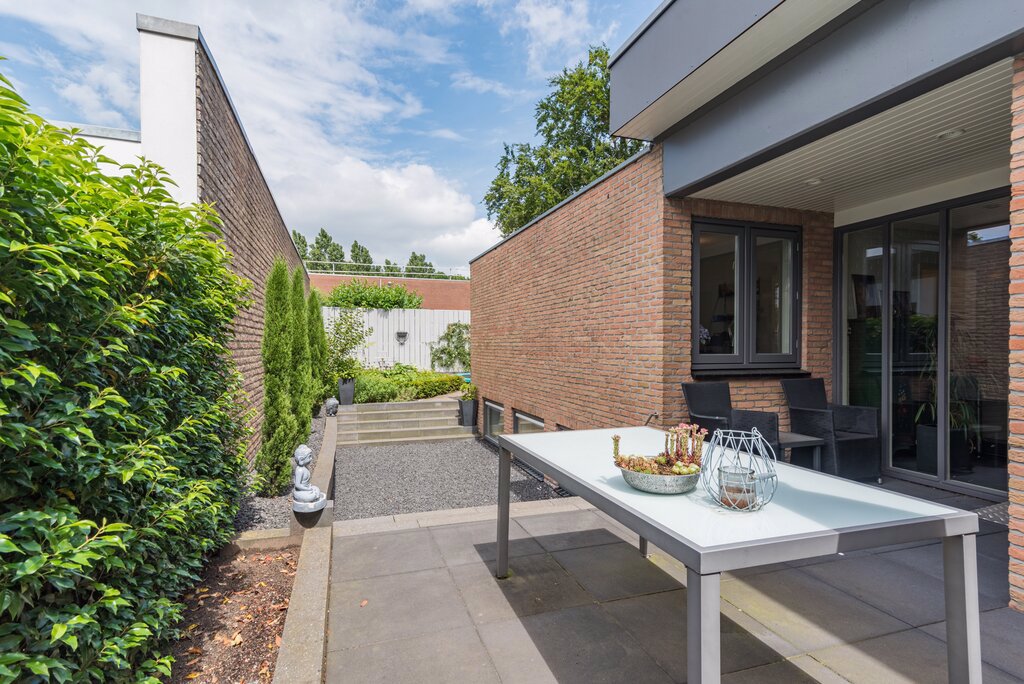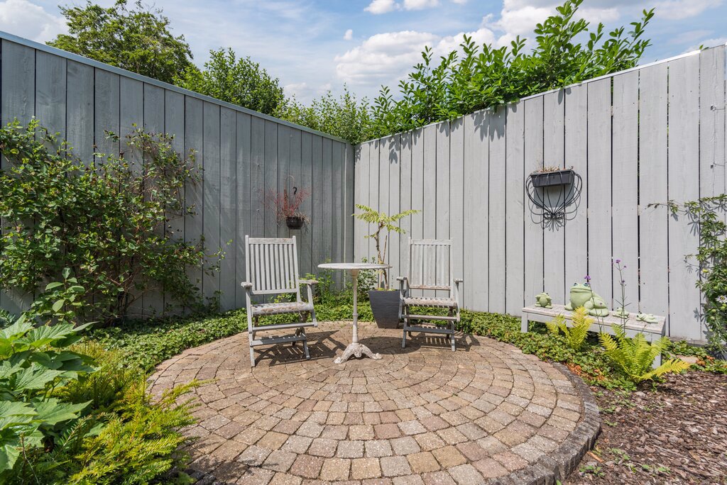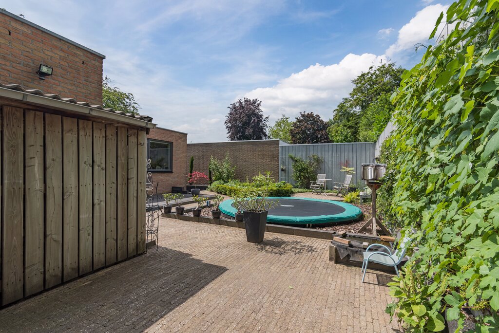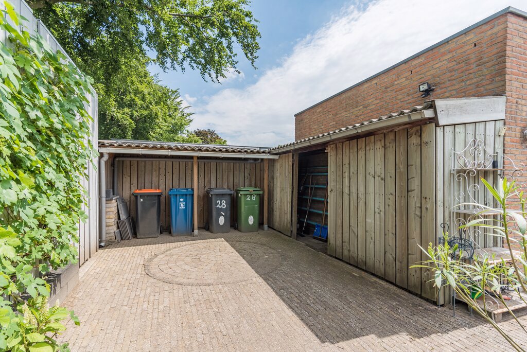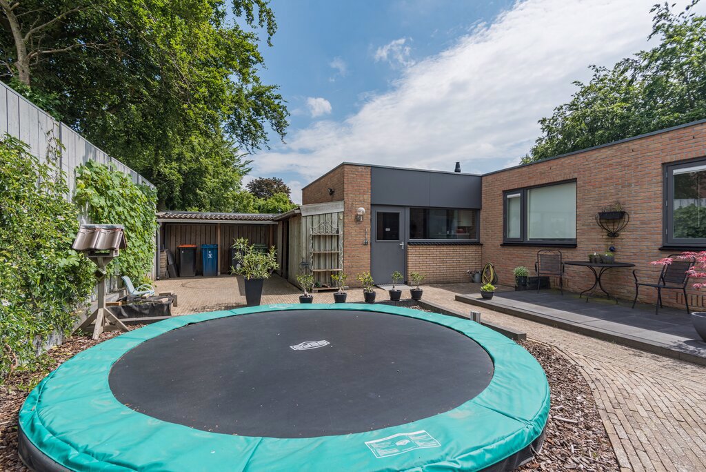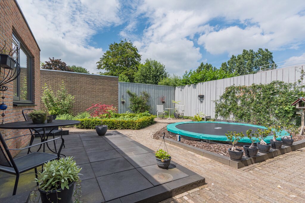 De achtertuin ligt op het noordwesten. Op het terras naast de woning kun je genieten van de middag- en avondzon. Achterin de tuin is een overkapping gemaakt voor tuingereedschap en de kliko’s. Achter de schutting ligt een groenstrook met daaraan grenzend een fietspad.