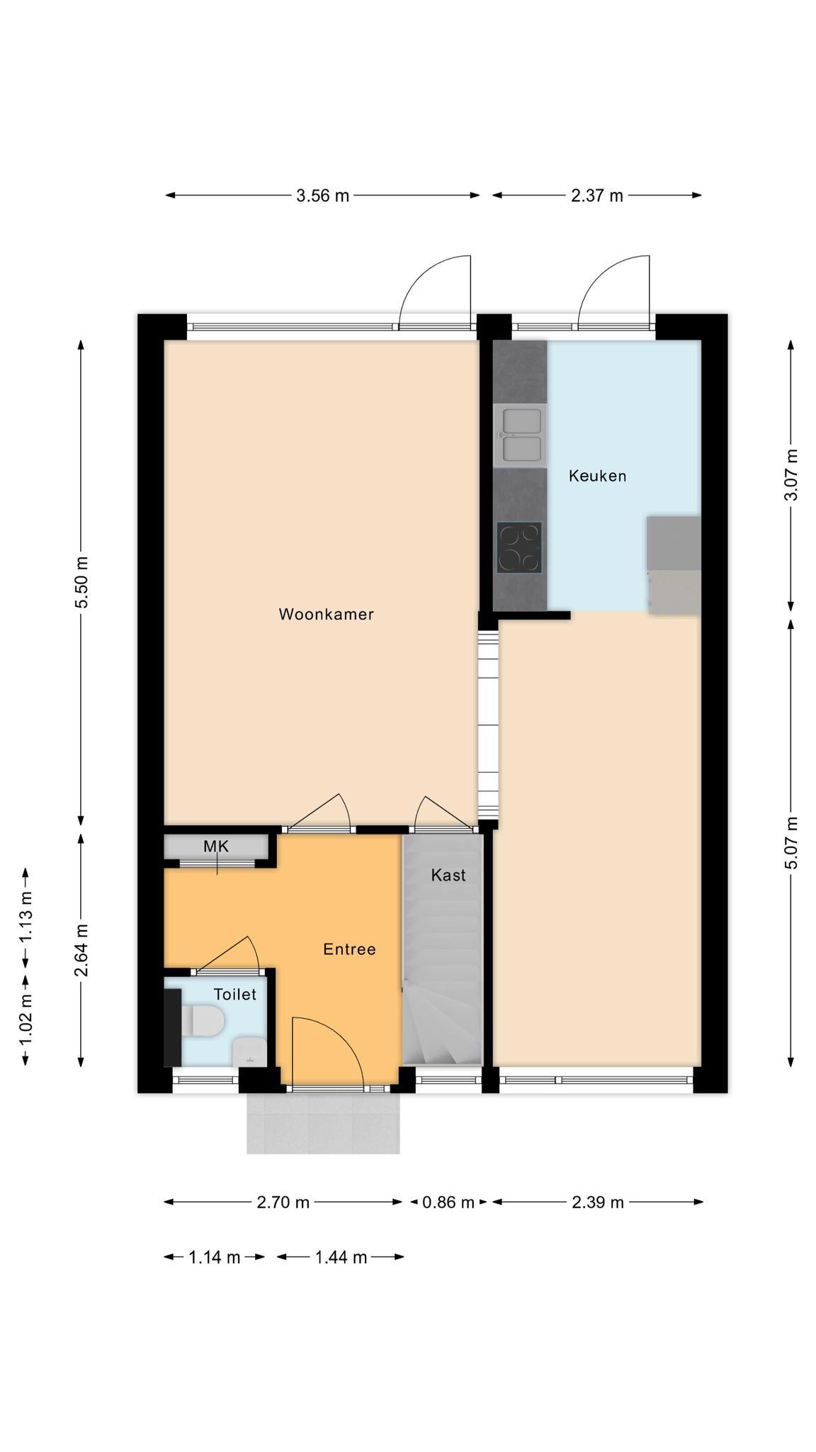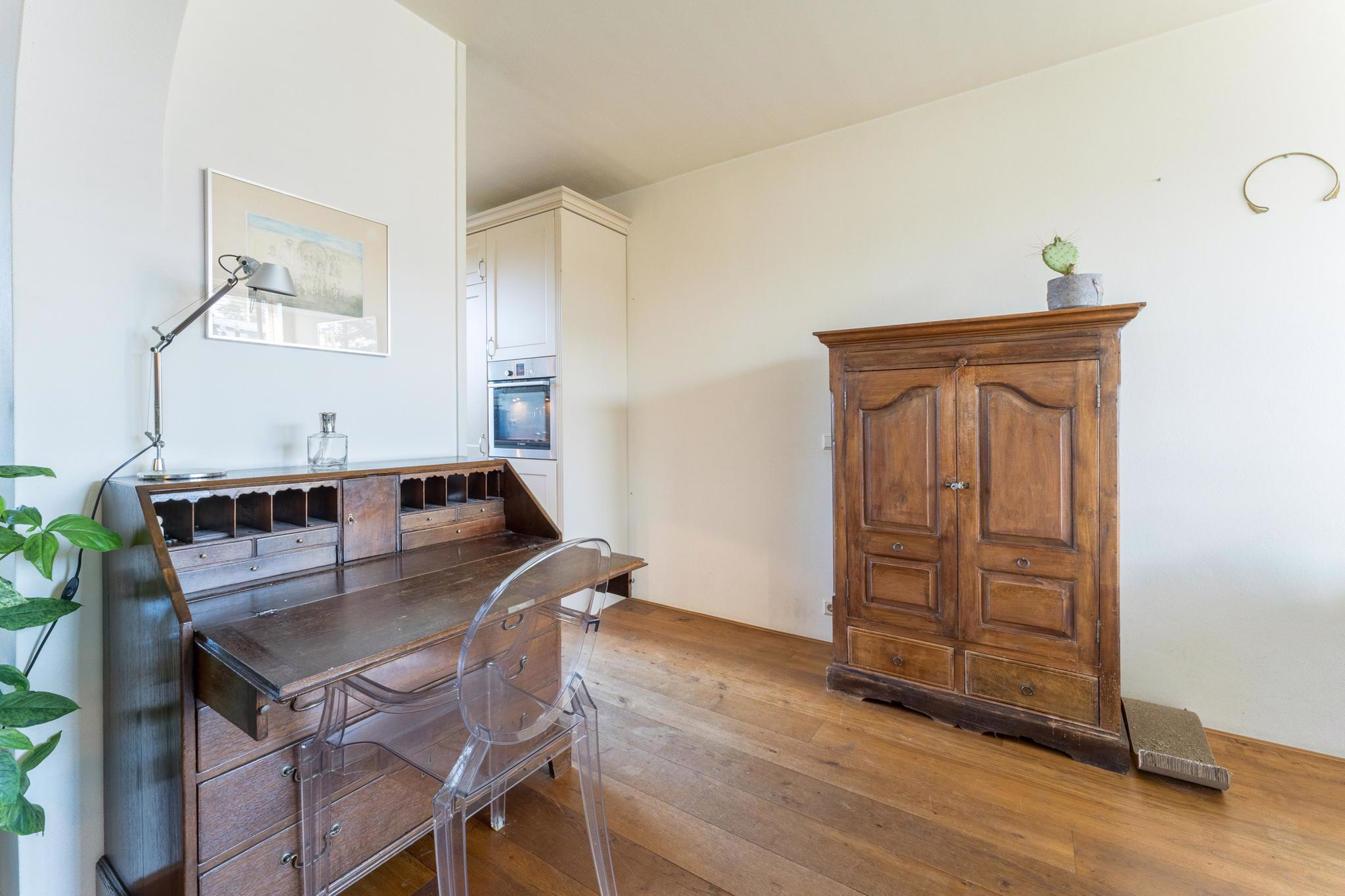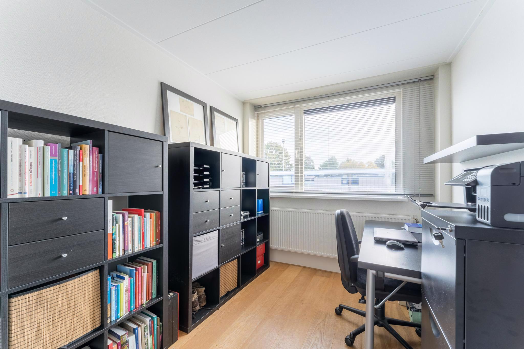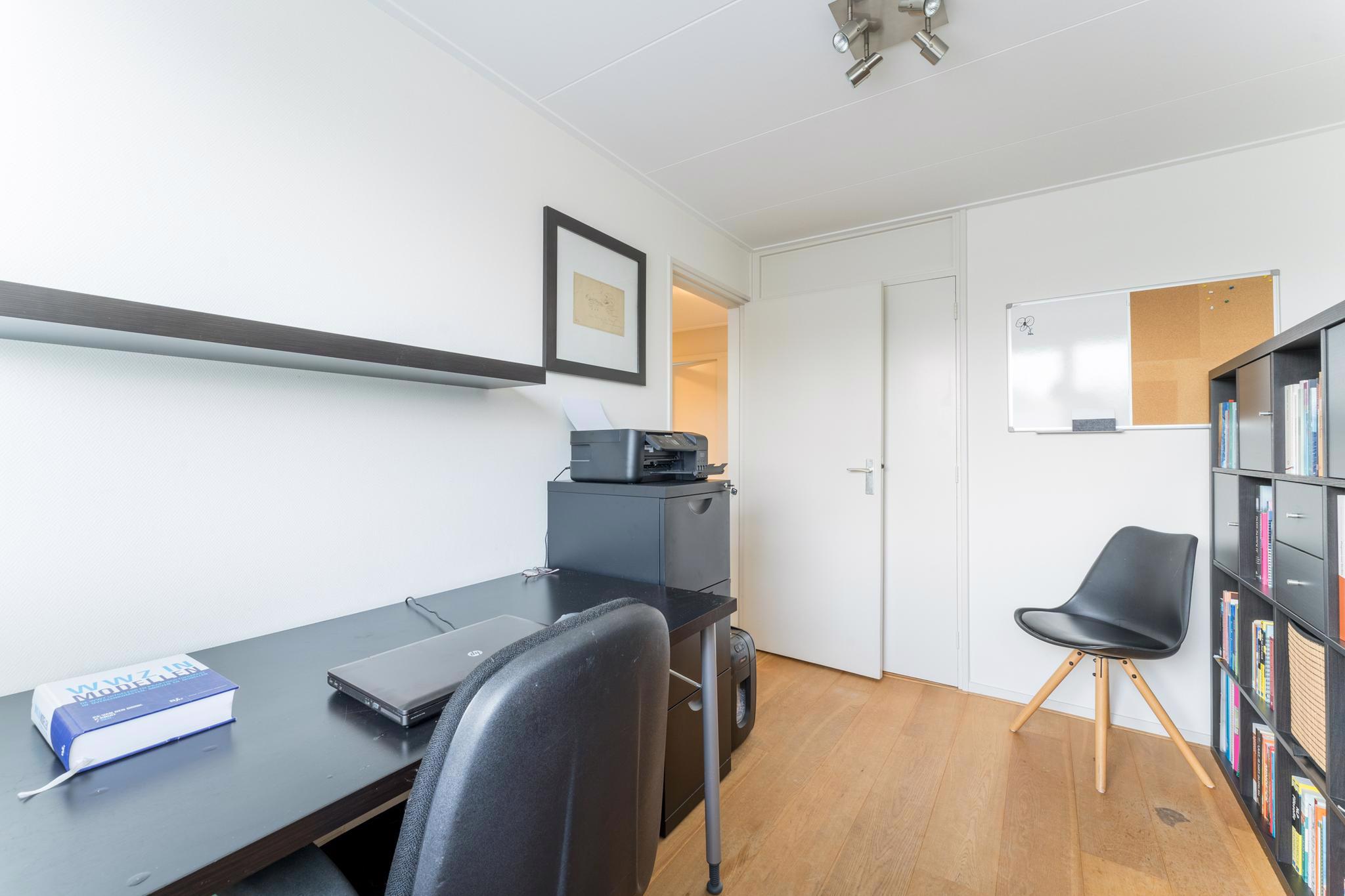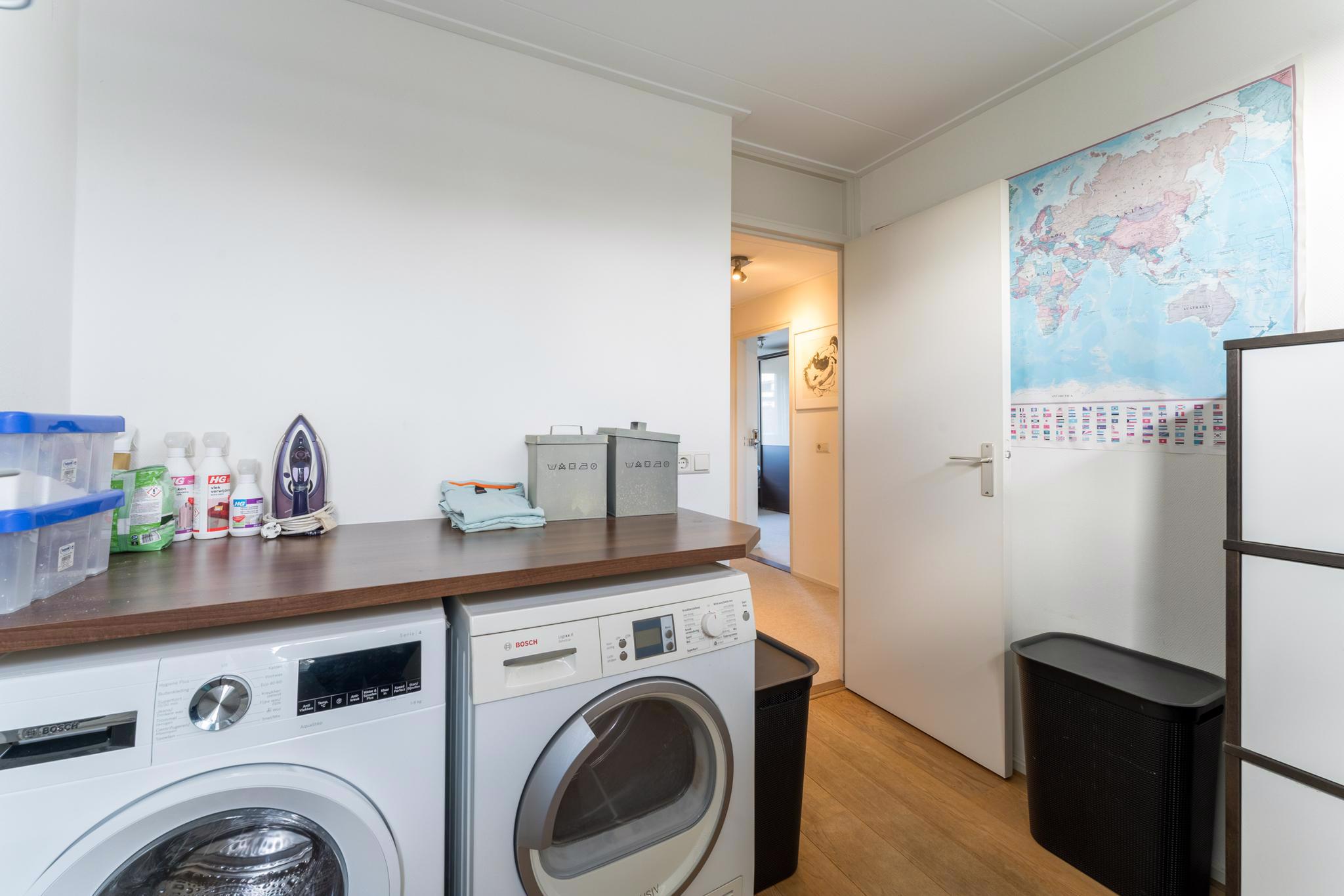 Vanuit de lichte zitkamer kijk je uit op de achtertuin. Aan de voorzijde van de woning is het eetgedeelte. Er is een praktische trapkast aanwezig. De keuken, vernieuwd in 2008, is volledig uitgerust met moderne inbouwapparatuur zoals een inductiekookplaat, oven, koelkast, vriezer, afzuigkap en vaatwasser.
