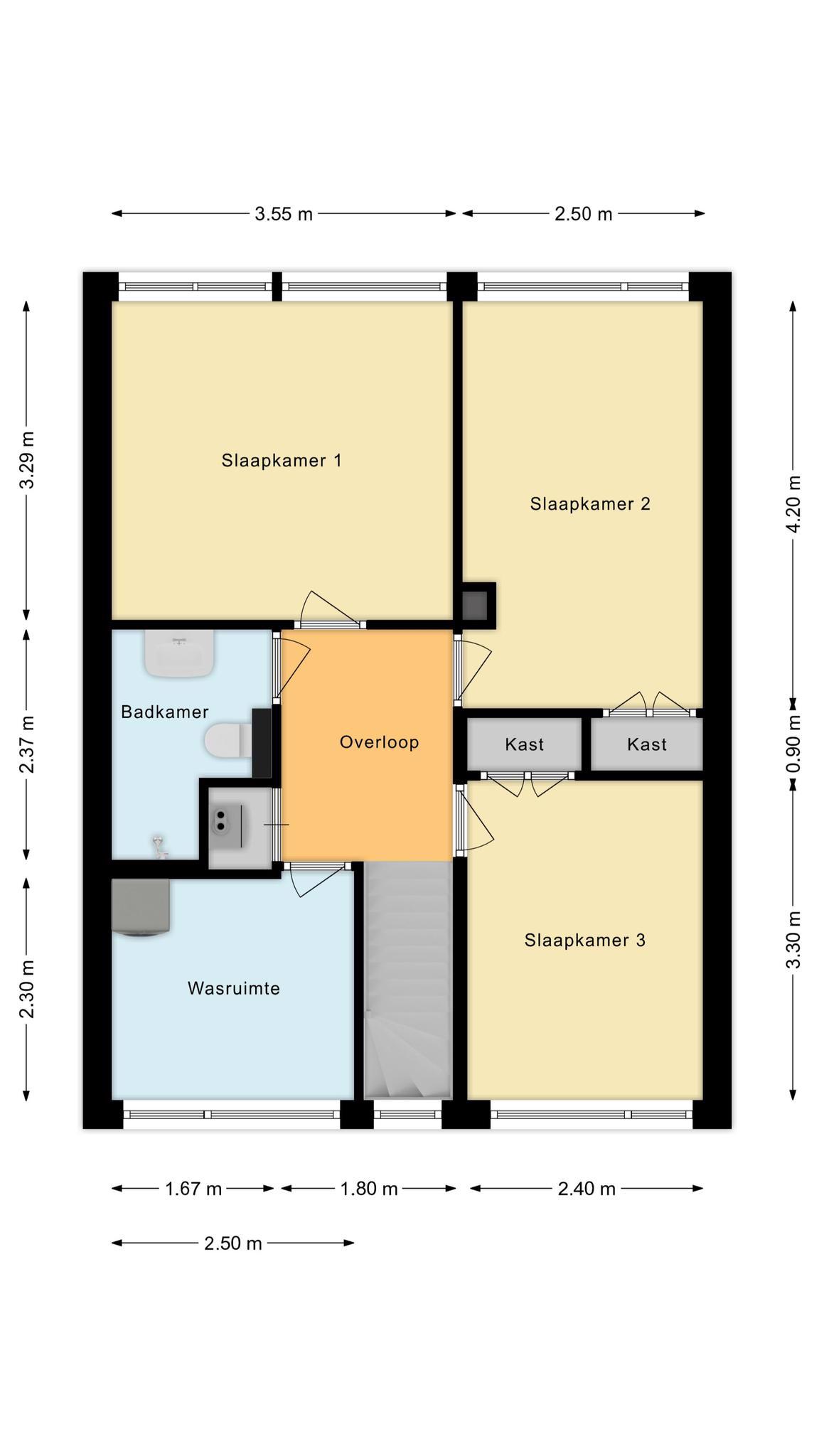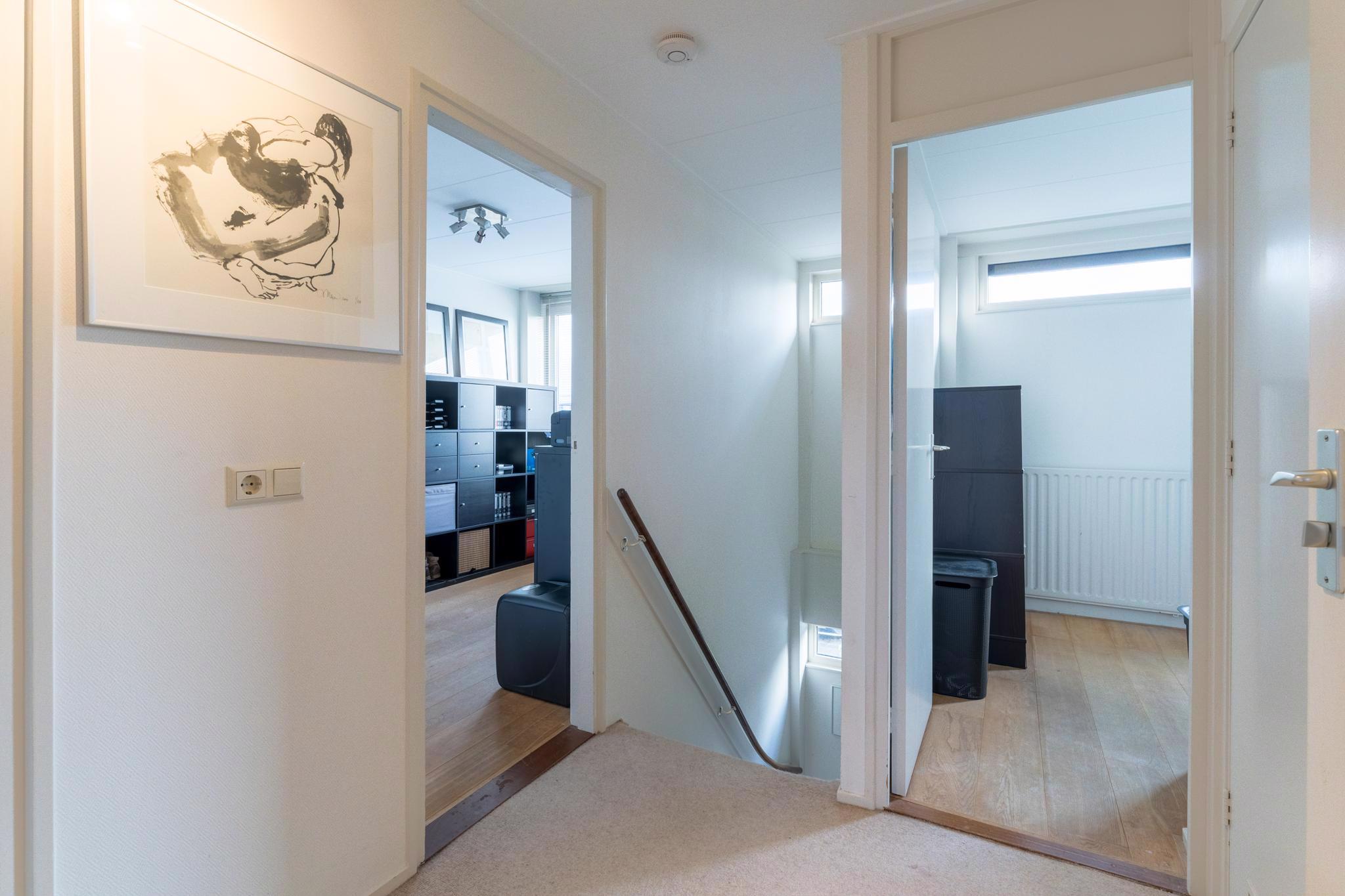 Op de 1e verdieping zijn maar liefst 4 slaapkamers te vinden. Eén daarvan is in gebruik als wasruimte. De badkamer beschikt over een douche, badmeubel en toilet. Op de overloop is een vaste kast met daarin de cv-ketel.