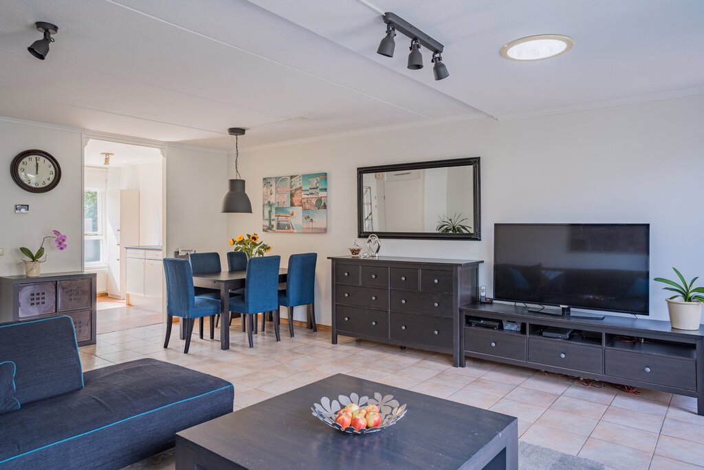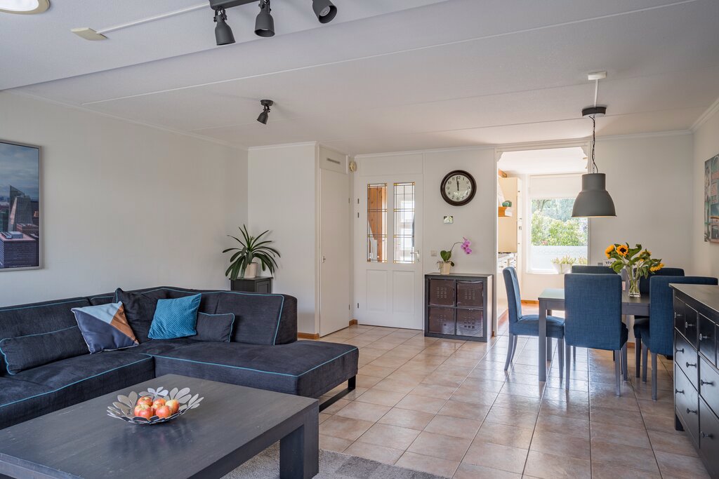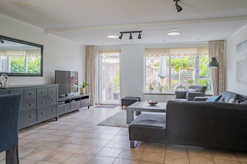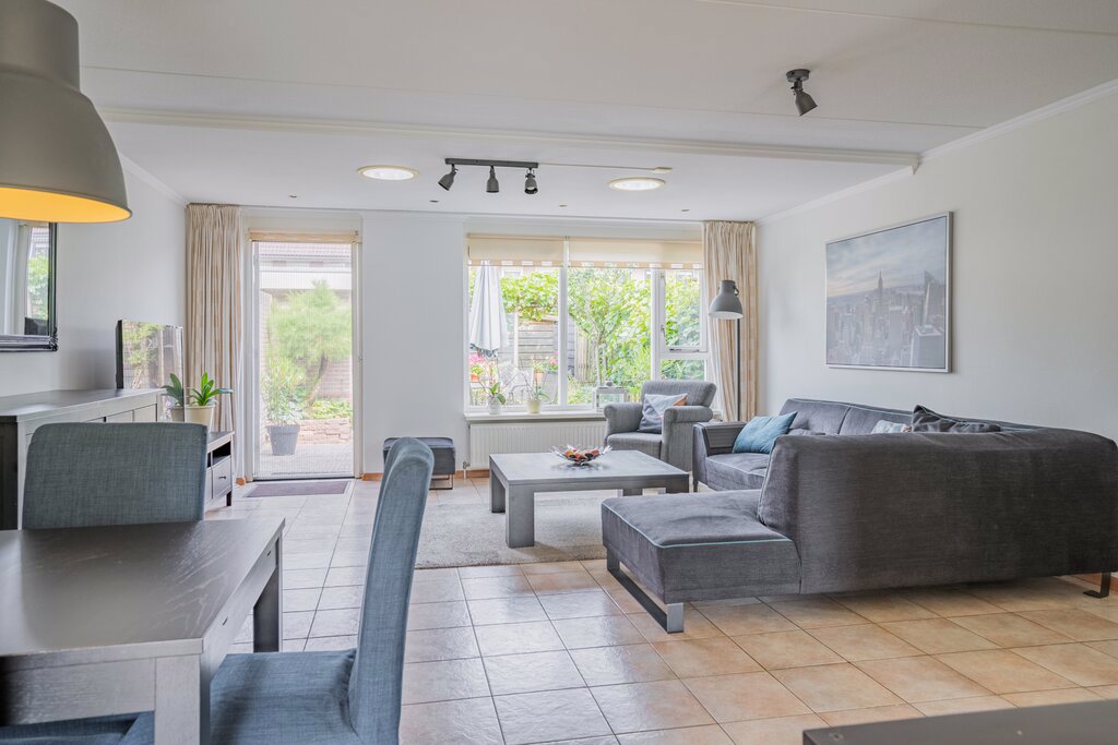 Via de hal met trap en toilet komen we in ruime tuingerichte woonkamer. Door het gebruik van solatubes in het dak van de uitbouw is het een mooie lichte ruimte. Er is vloerverwarming als bijverwarming aanwezig.