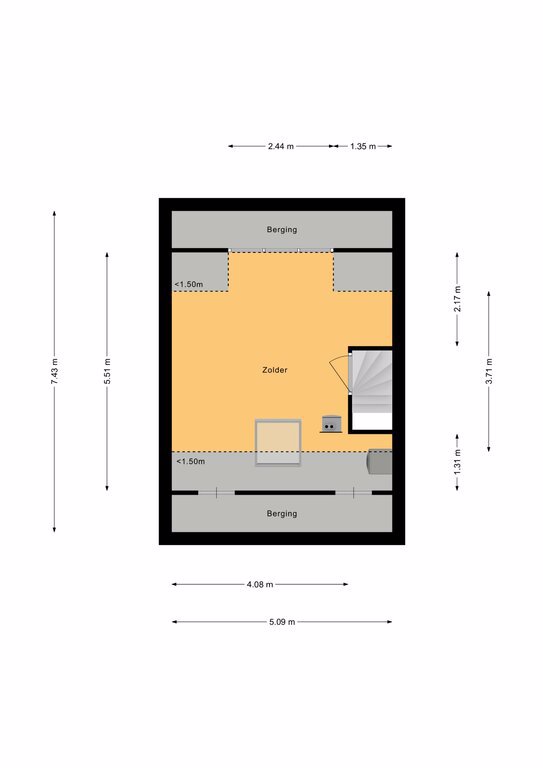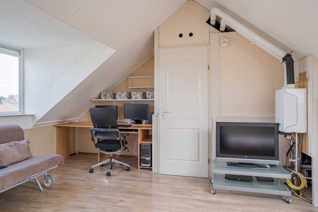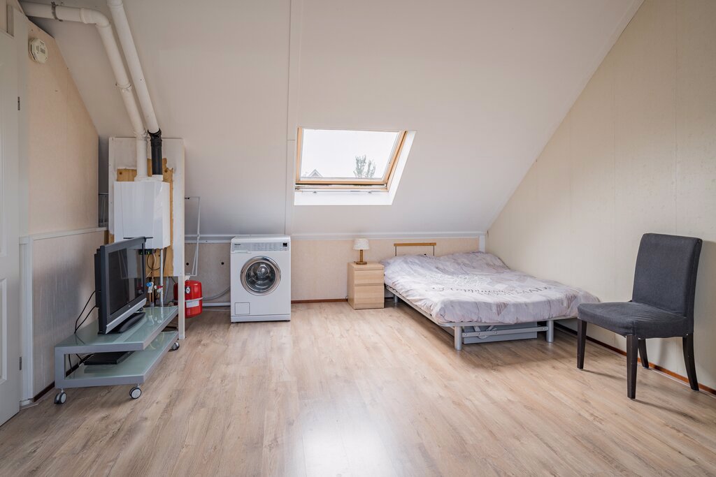 Op de tweede verdieping is een grote slaapkamer, die eventueel ook in twee kamers kan worden opgesplitst. Door het kunststof dakkapel is hier extra ruimte gecreëerd. De aansluiting voor de wasmachine en de cv-ketel zijn ook aanwezig in deze ruimte.