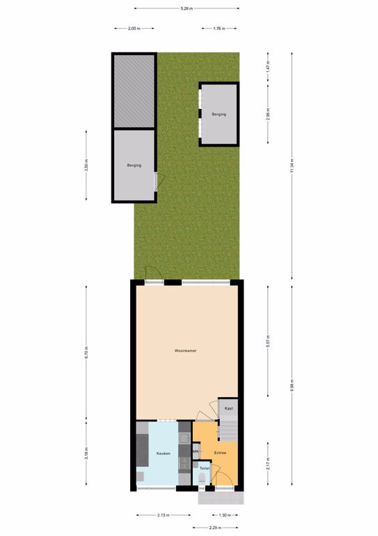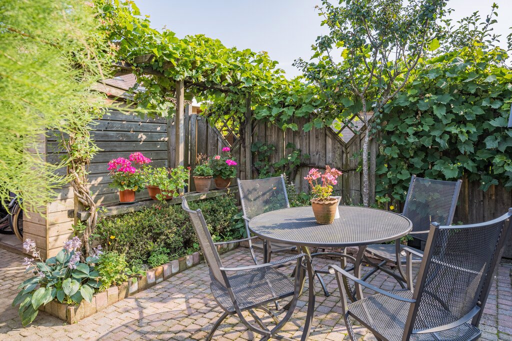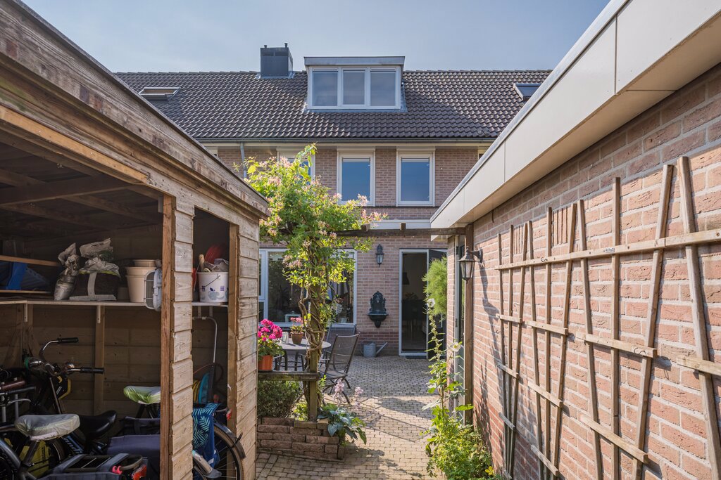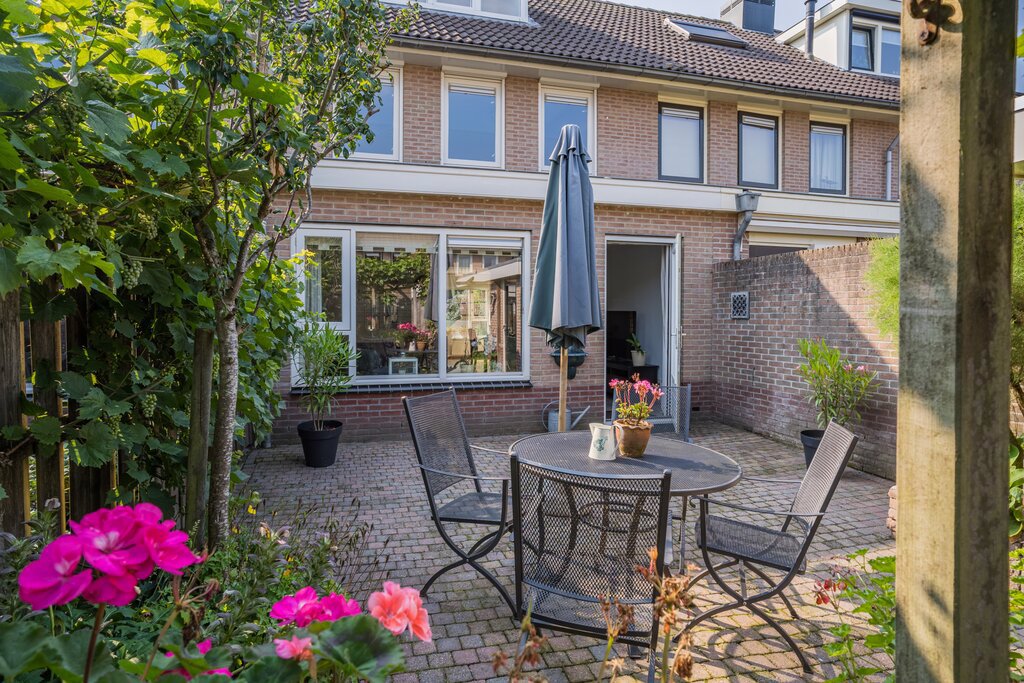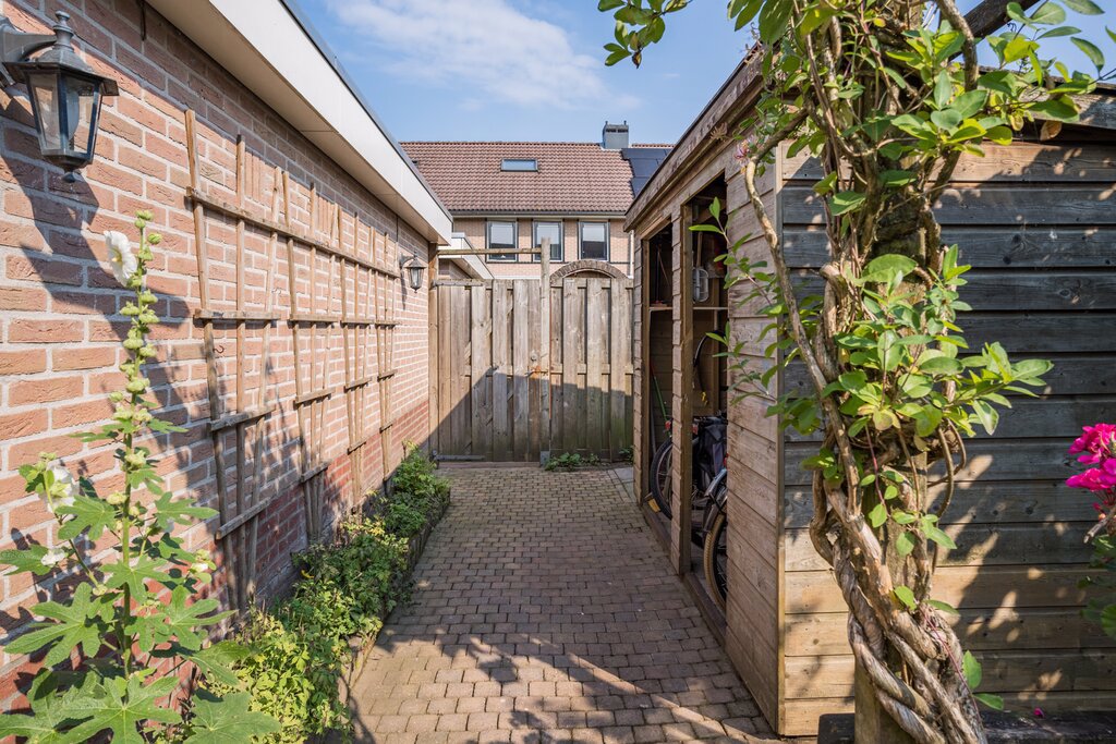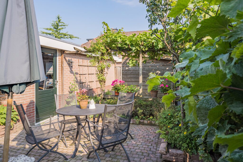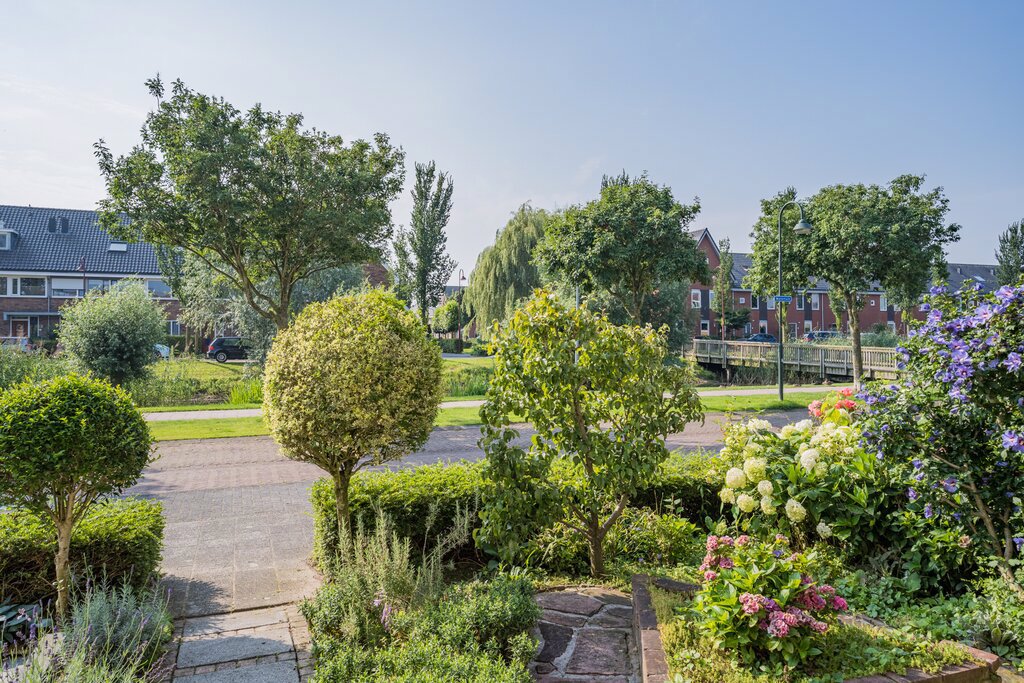 De achtertuin is ruim 11 meter diep, ligt op het noordwesten en heeft een stenen berging. Daarnaast staat er een houten overkapping in de tuin voor het opbergen van fietsen en dergelijke. De grote voortuin ligt op het zuidwesten. Hier heb je een mooi vrij uitzicht over het water.