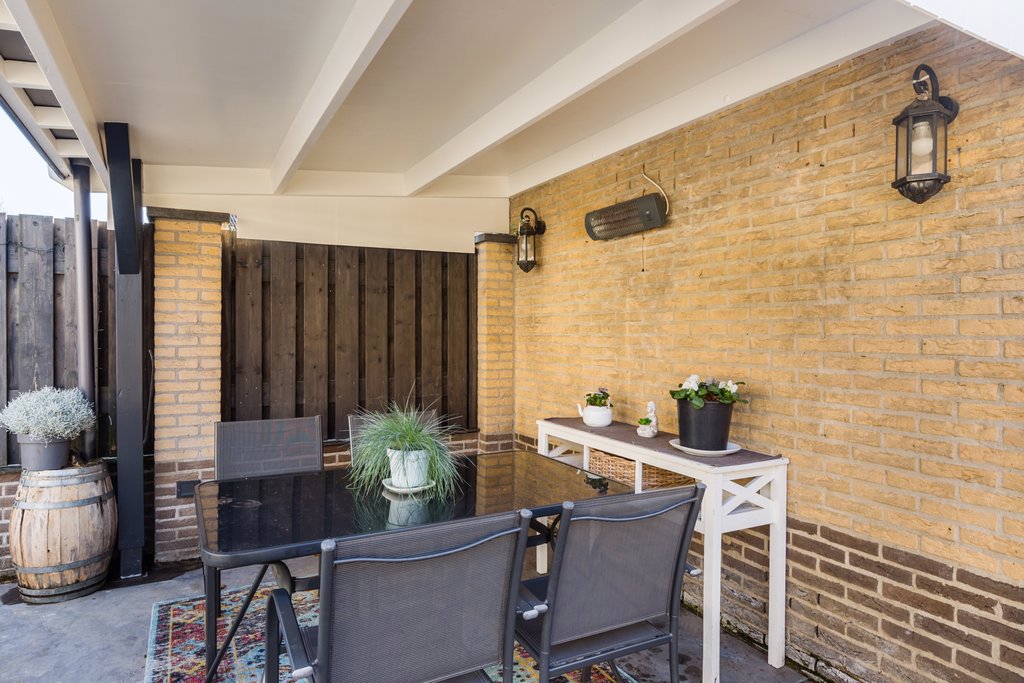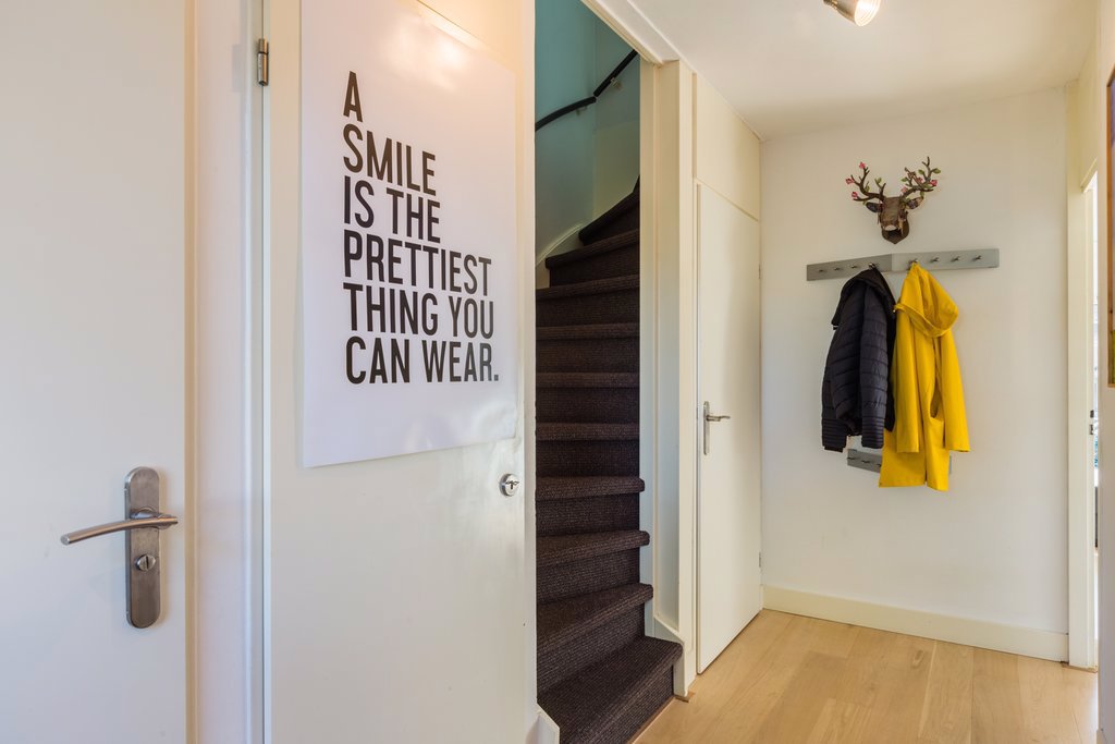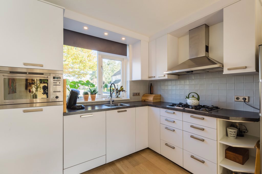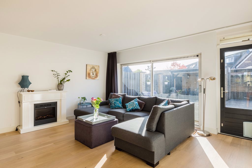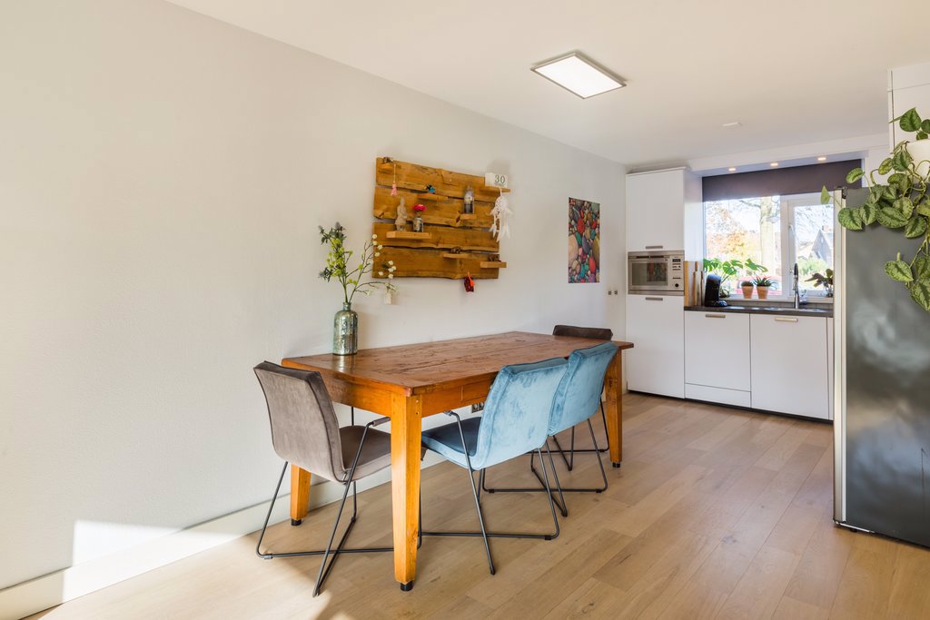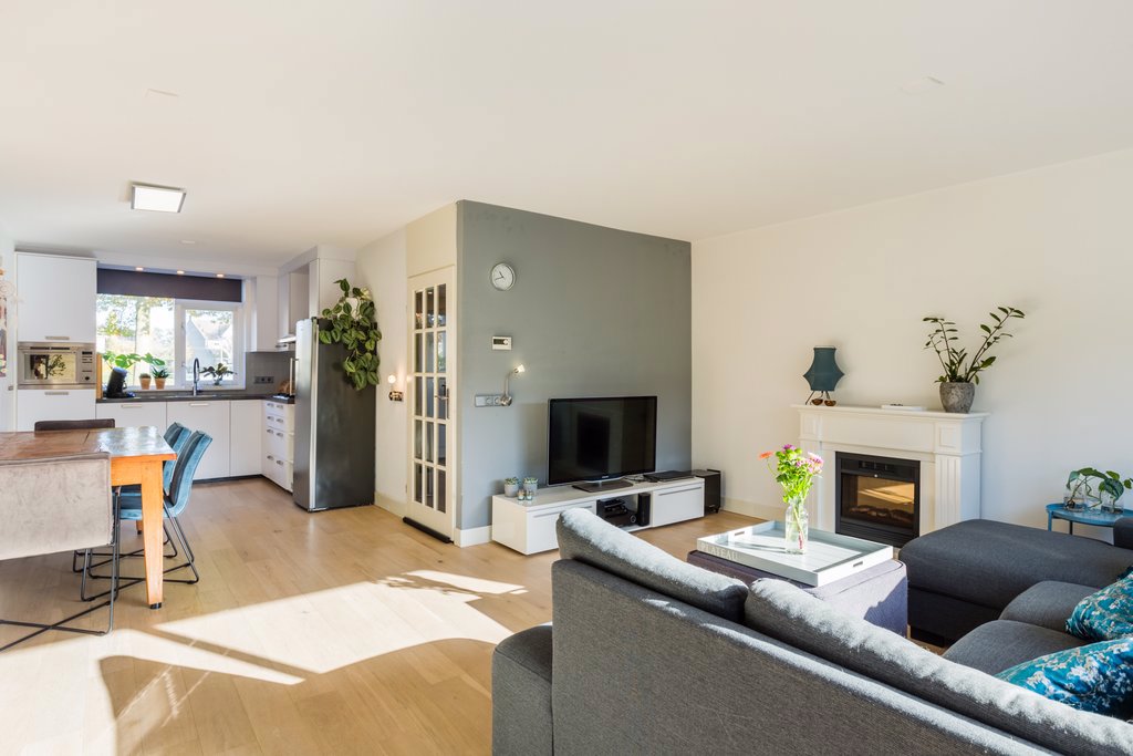 Vanuit de hal met toilet, meterkast, trapkast en trap komen we in een lichte en sfeervolle woonkamer. Door de grote schuifpui heb je een fijne verbinding met de achtertuin. De elektrische haard met schouw zorgt voor wat extra sfeer in de wintermaanden. De complete hoekkeuken ligt aan de voorzijde van de woning en is voorzien van een afwasmachine, combi-oven, 5-pits gaskookplaat, afzuigkap en een losse koelkast en vrieskast.