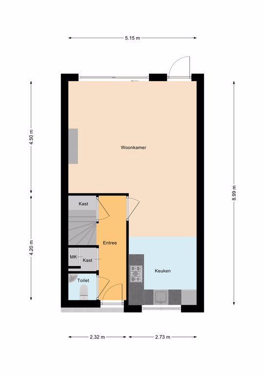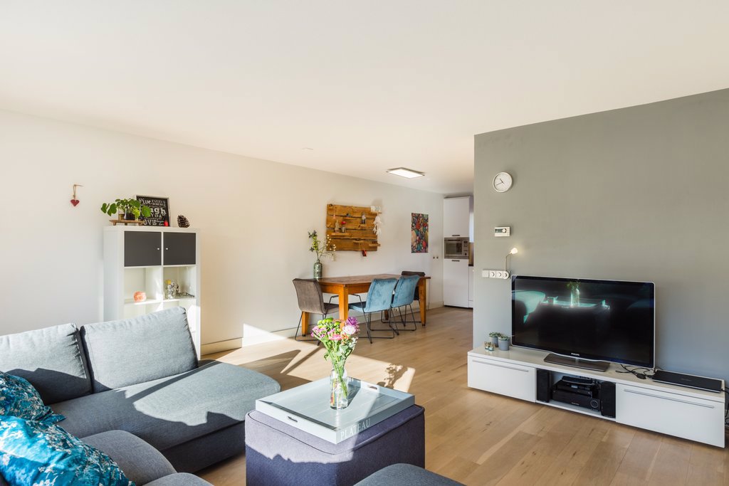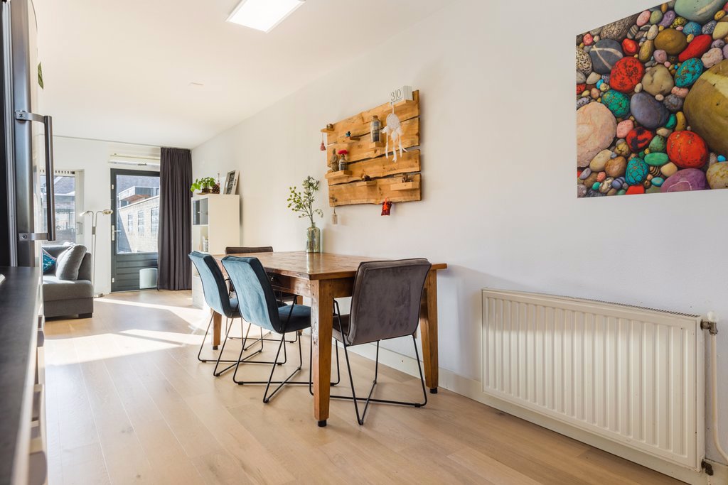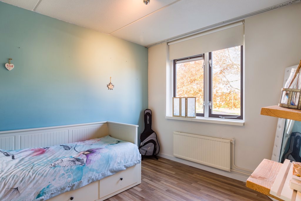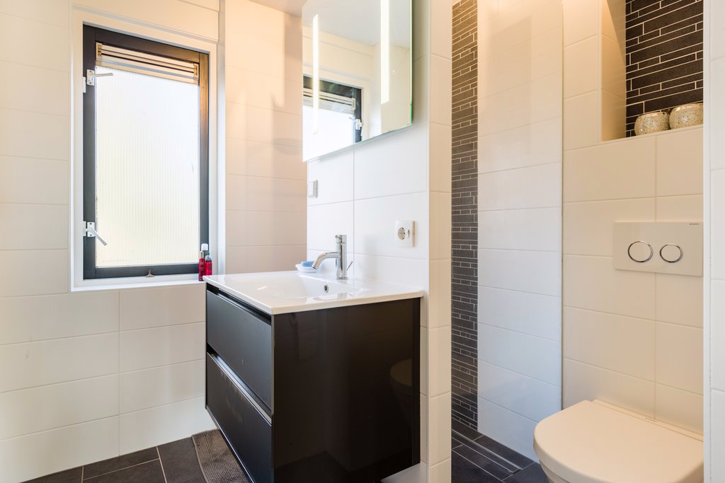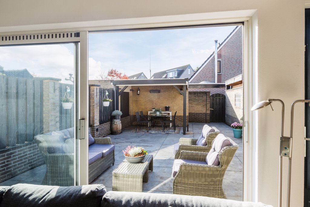 Vanuit de hal met toilet, meterkast, trapkast en trap komen we in een lichte en sfeervolle woonkamer. Door de grote schuifpui heb je een fijne verbinding met de achtertuin. De elektrische haard met schouw zorgt voor wat extra sfeer in de wintermaanden. De complete hoekkeuken ligt aan de voorzijde van de woning en is voorzien van een afwasmachine, combi-oven, 5-pits gaskookplaat, afzuigkap en een losse koelkast en vrieskast.