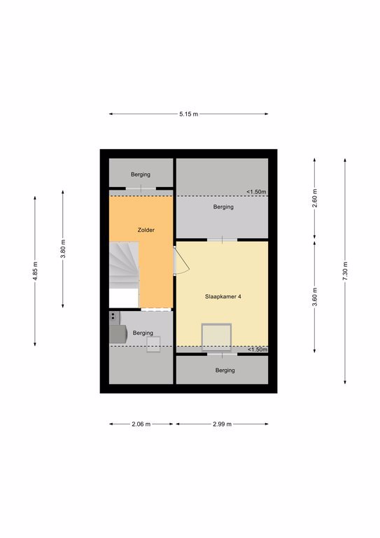 Op de voorzolder is er ruimte voor de wasmachine en wasdroger. Ook de cv-ketel hangt hier. Er is veel bergruimte onder de schuine kanten én op de ruime vliering. Daarnaast is er op zolder een grote slaapkamer met inloopkast te vinden.