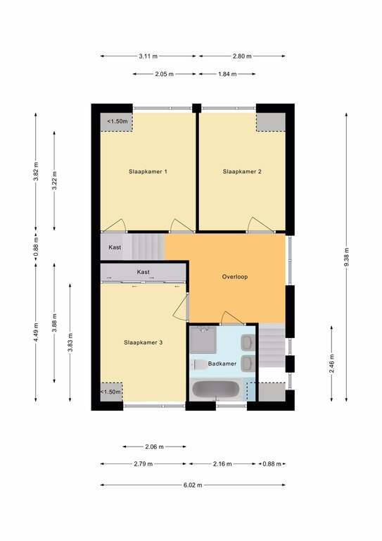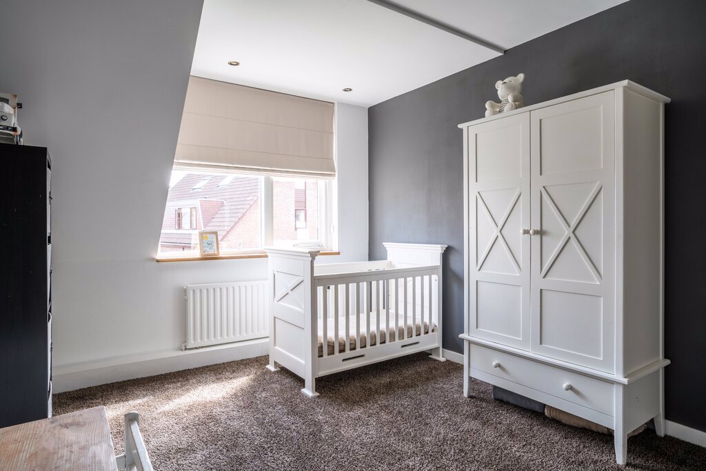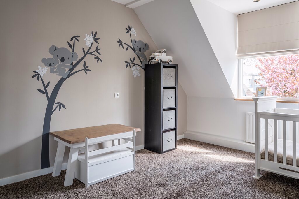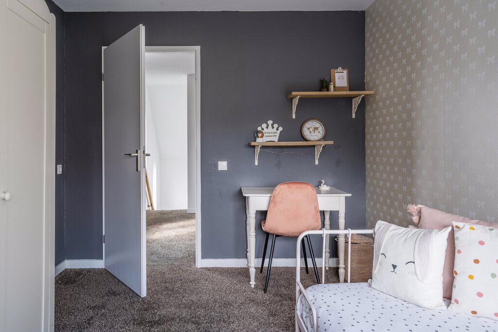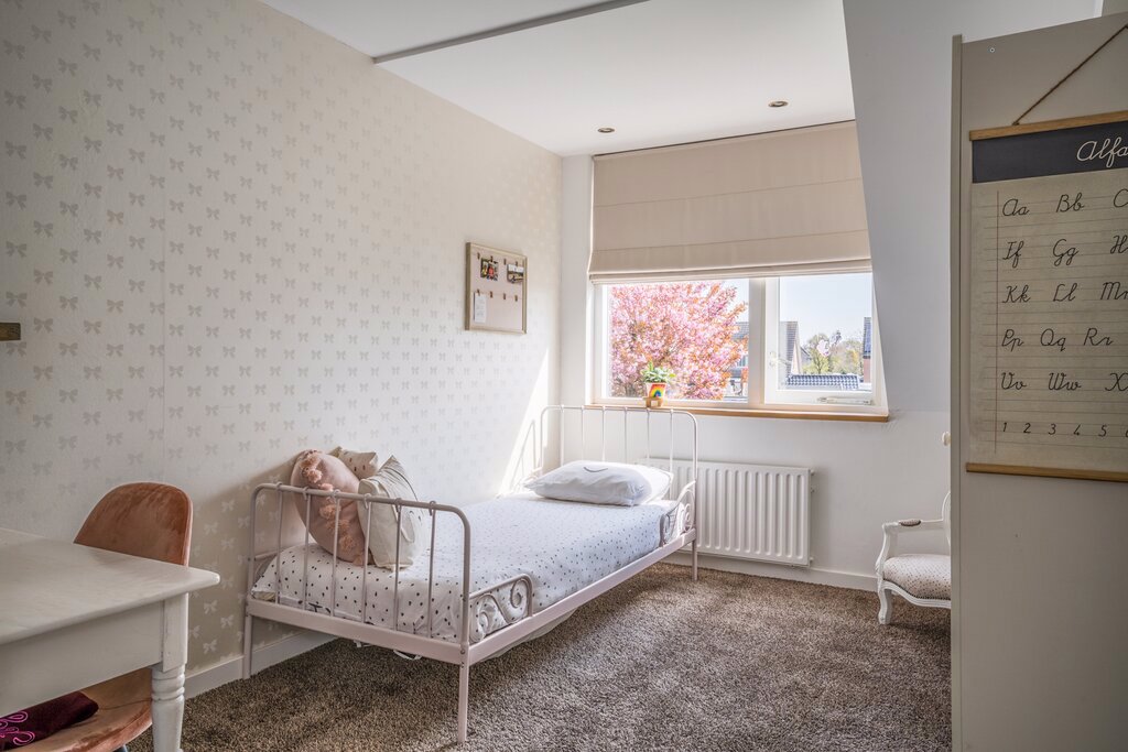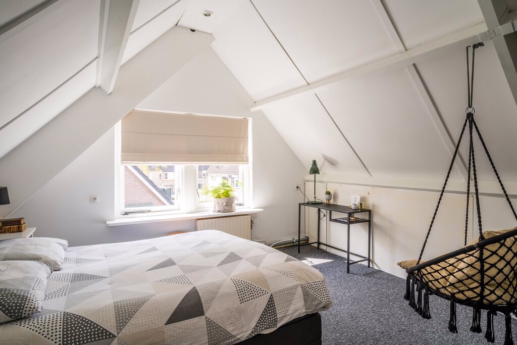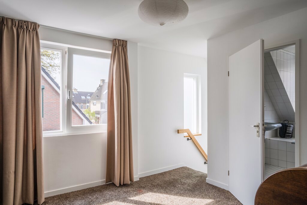 Op de 2e verdieping is een vierde slaapruimte gerealiseerd. Hier is ook plek voor de wasmachine en wasdroger. Achter de schuine kanten is bergruimte te vinden.
